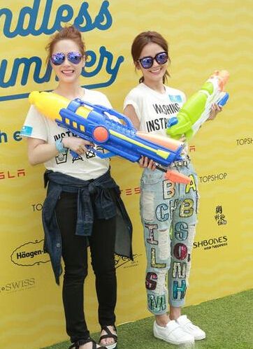 活动现场阿Sa透露自己很喜欢夏天常常去沙滩玩,所以买了很多泳衣。问及是否会穿给男友陈伟霆看,阿娇在旁帮腔:“每个人有眼睛都看到。”阿娇表示自己反而不喜欢夏天,原来是因为她很容易出汗,她说:“我们两个开演唱会,我满脸是汗,妆都花了,希望基因改变一下。”