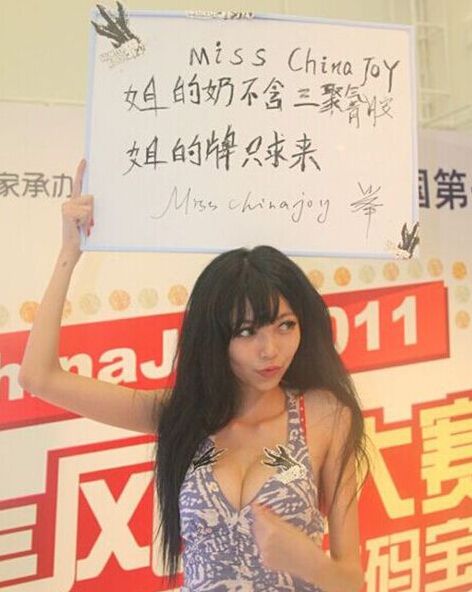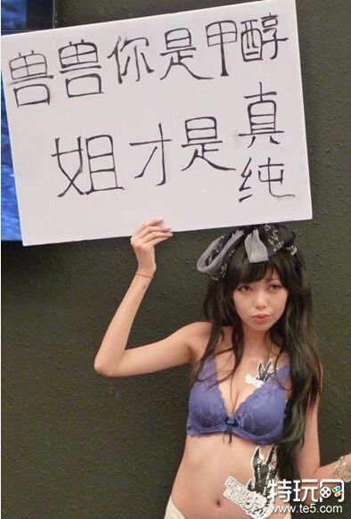 而这其中的佼佼者,非“真纯姐”莫属。在2010年的CJ展会上,有一个SG在众多美女中脱颖而出,而她的法宝便是文字标语。这个女孩当众举着“兽兽你是甲醇,姐才是真纯”的纸牌,当众挑衅兽兽,成功的将相机吸引过来。